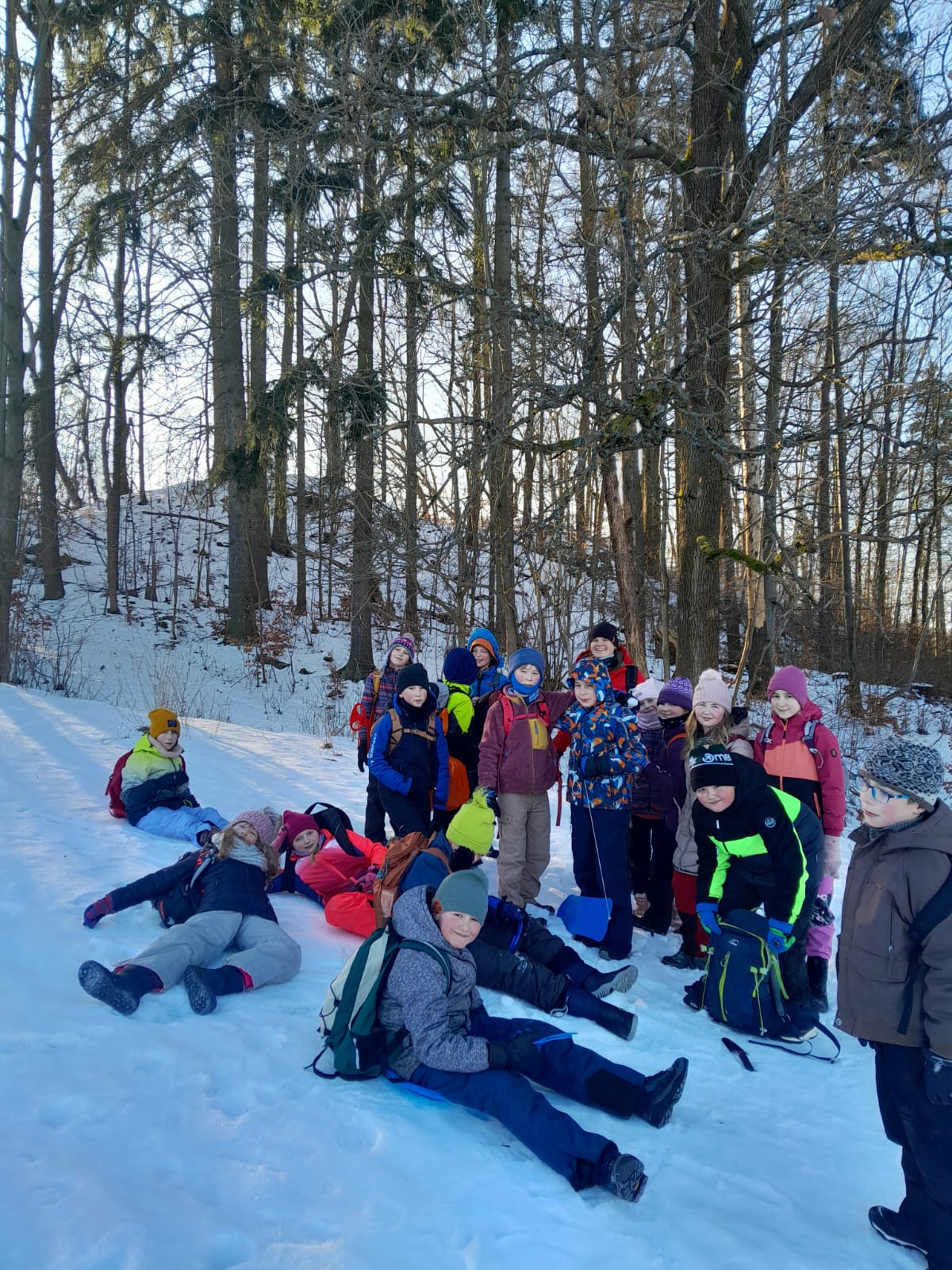 V průběhu celého roku navštěvujeme s dětmi zajímavá místa v okolí školy s vazbou na vodu (mokřady, meandrující říčku, lužní lesy, zemědělsky intenzivně obdělávanou krajinu, ekozemědělce, zdravé i monokulturní lesy a další...). S ohledem na probíhající klimatické změny se učíme, co krajina potřebuje, aby dokázala udržet více vody a jak obnovovat malý vodní cyklus. Navštěvujeme úžasná místa, z nichž si odnášíme hluboké emoční prožitky, ale i intelektuální vědomosti - krajina kolem nás je nám učebnicí v "makroměřítku". Co se v ní naučíme, snažíme se uplatnit na školním pozemku - naší "mikrolaboratoři". Pro realizaci drobných opatření, na která stačíme, je přesně tak akorát.
